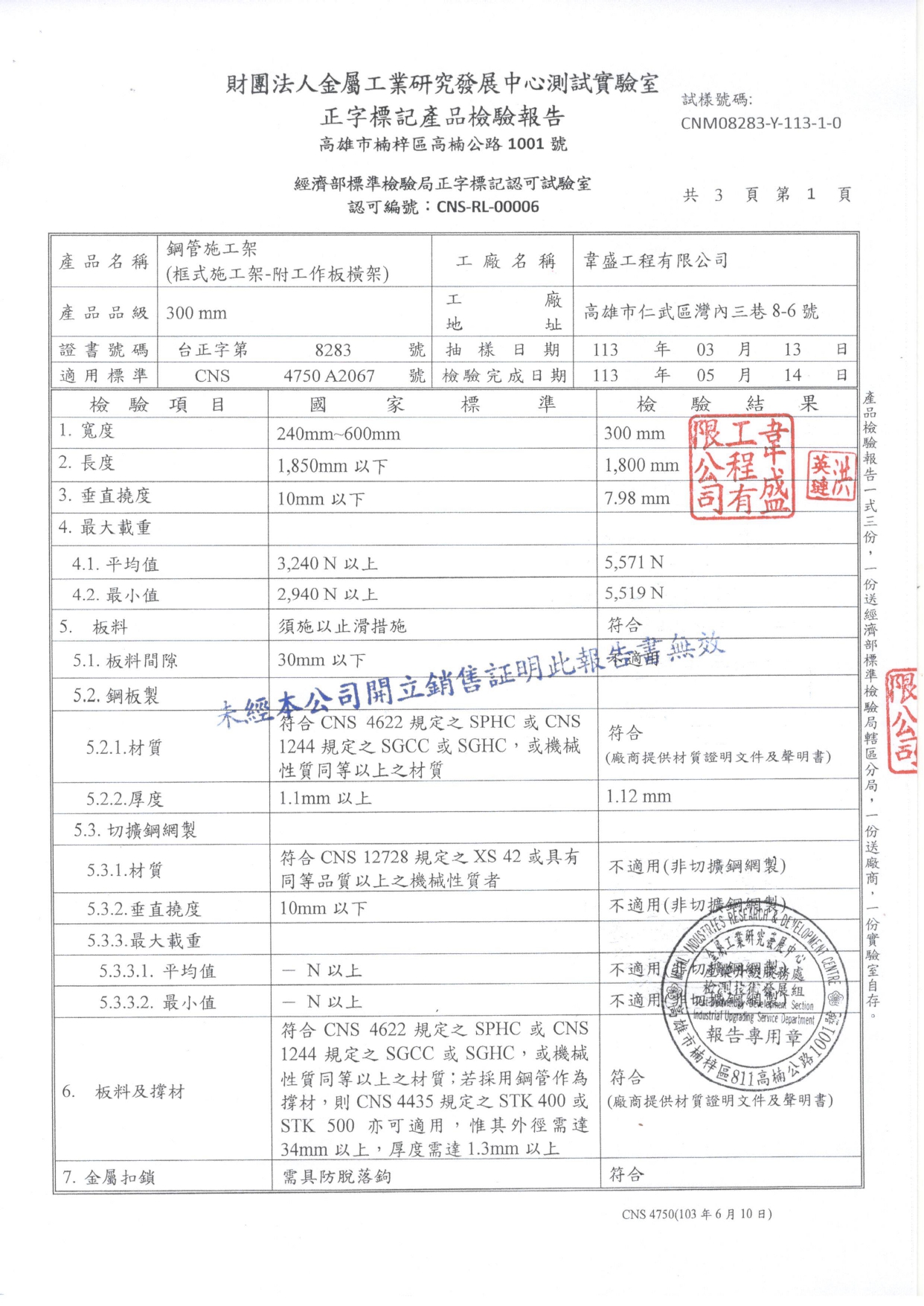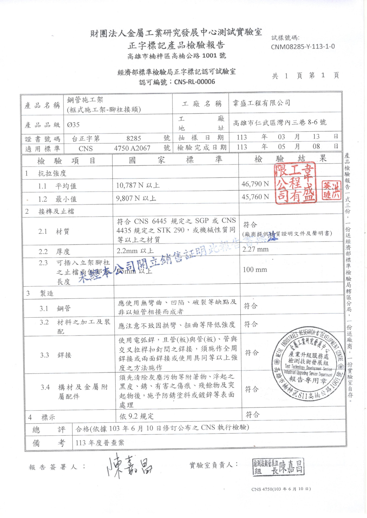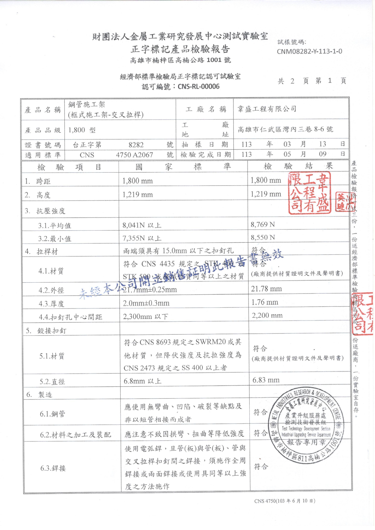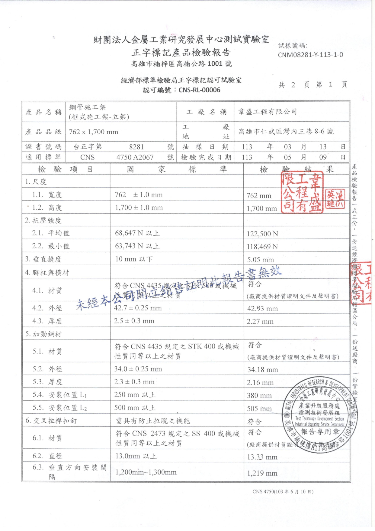 韋洋有限公司全面採用合格且具備檢測證明的鷹架材料,所有鋼管、扣件、踏板等關鍵構件皆通過載重測試、拉力測試、材質強度檢驗與耐腐蝕性評估,確保在各類施工環境下皆能維持安全穩定的支撐效果。每批材料均具備合法檢測報告與追溯編號,由專業團隊定期檢查與維護,降低施工風險並提升整體工程品質。透過完整的測試制度與紀錄,我們為客戶打造最可靠、最安心的鷹架使用保障。